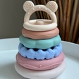 Силіконова пірамідка-гризунець - розвивальна іграшка для малюків, яка тренує дрібну моторику, логіку та координацію рухів. М’який харчовий силікон безпечний для дитини, приємний на дотик і підходить для гри вдома та у ванні. Кільця легко складати, гризти під час прорізування зубів і вивчати кольори та розміри.