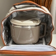 Переваги:Безпечні харчові матеріалиКлапан у кришці для зручного відкривання та випуску париКомпактна складна ложка, що зберігається всерединіМіцна ручка для комфортного користуванняТермосумка на блискавці з м’якою ручкою для перенесення
